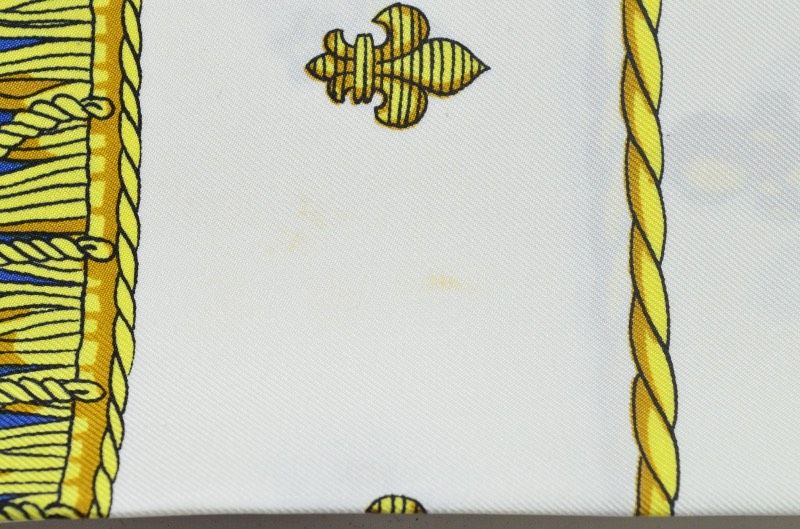 エルメス HERMES カレ90 スカーフ シルク100% 船デザイン ブルー×ゴールド系 MADE IN FRANCE き