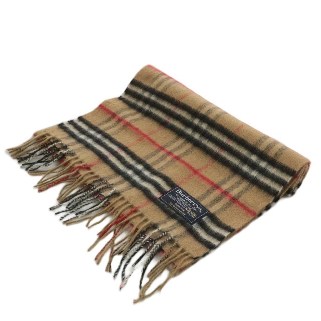 バーバリーズ Burberrys ヴィンテージ ノバチェック マフラー ストール カシミヤ ウール混 フリンジ ロゴ 茶 ブラウン XZ GY 18