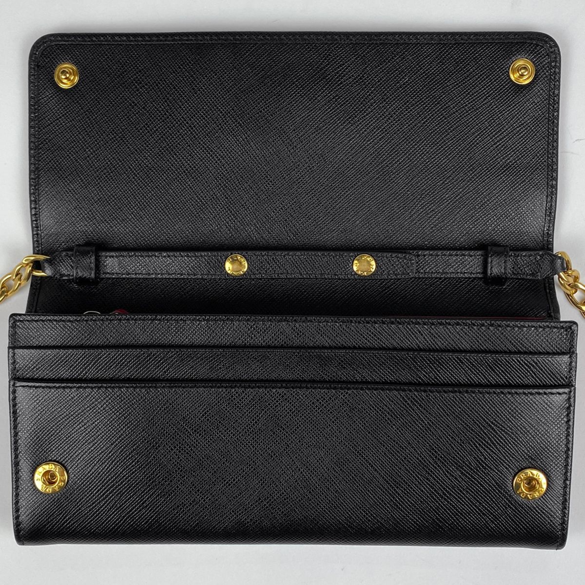 プラダ PRADA ロゴ チェーン ウォレット 長財布 チェーンウォレット レザー ネロ ブラック 1 BP 290 レディース