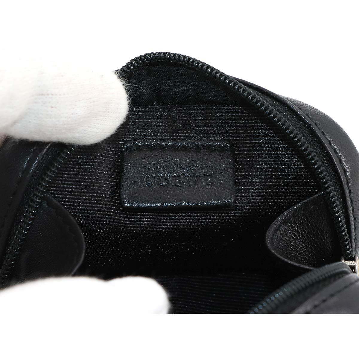 ロエベ LOEWE アナグラム コインケース 小銭入れ 財布 レザー ブラック シルバー 金具 Coin Purse