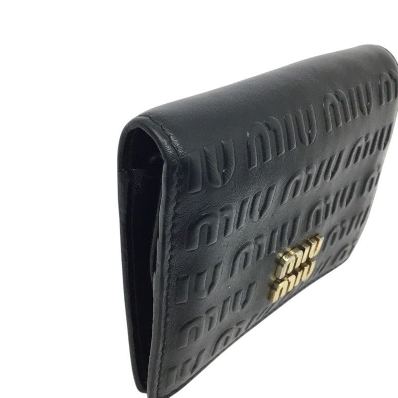 miumiu ミュウミュウ 二つ折り財布 コンパクトウォレット レザー ブラック ゴールド金具 レディース 品 -B 質屋 か n