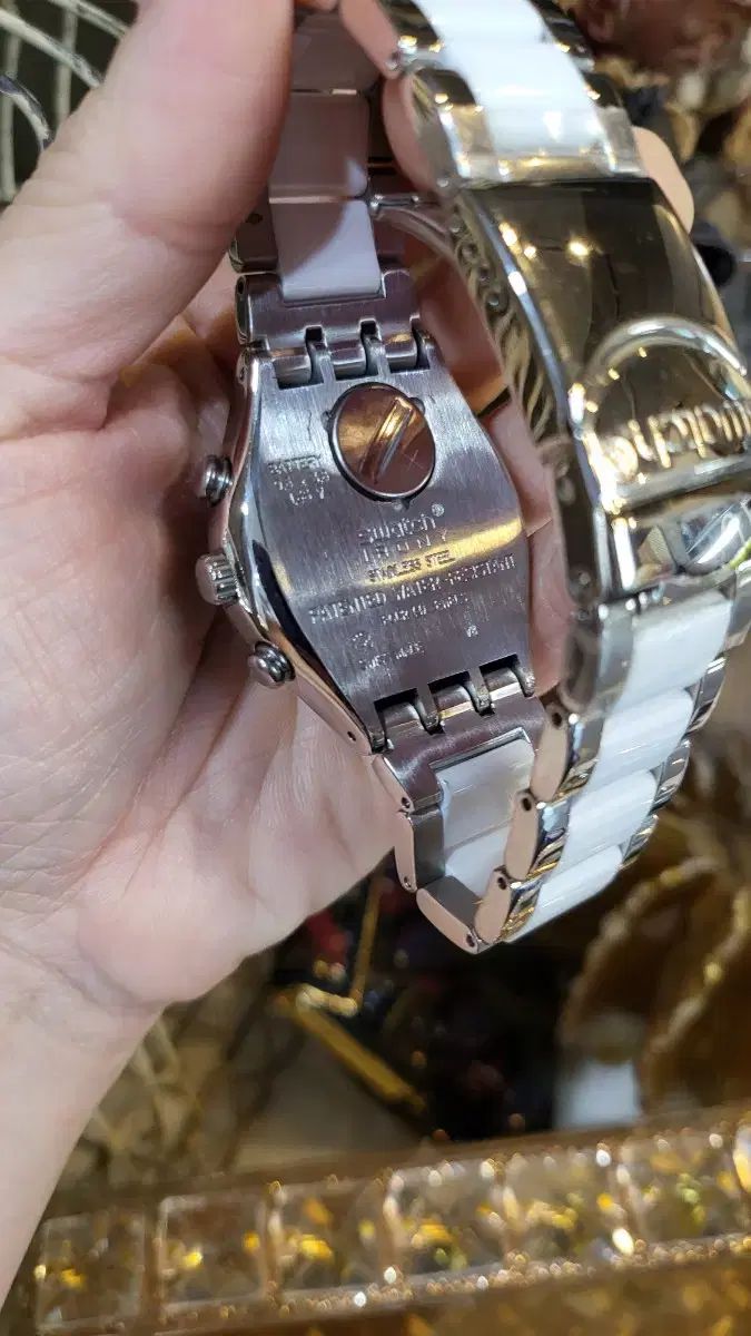 ヴィンテージSWATCH (スウォッチ) ホワイトメタルバンドウォッチ.時計のベゼルにはキュービックが埋め込まれており、さらに高級感が増しています。時間感はありますが、シミもシミもない傷です。ご不明な点がなければ、すぐに安心してお支払いいただけます!
