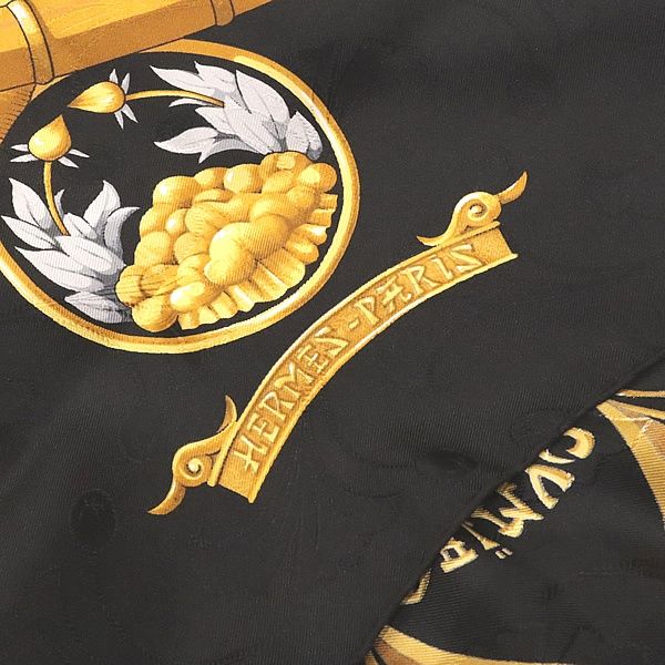 エルメス HERMES カレ90 大判スカーフ PRICES DU SOLEIL LEVART 大名 日出る国の皇子 黒系 マルチ シルク100% 17494