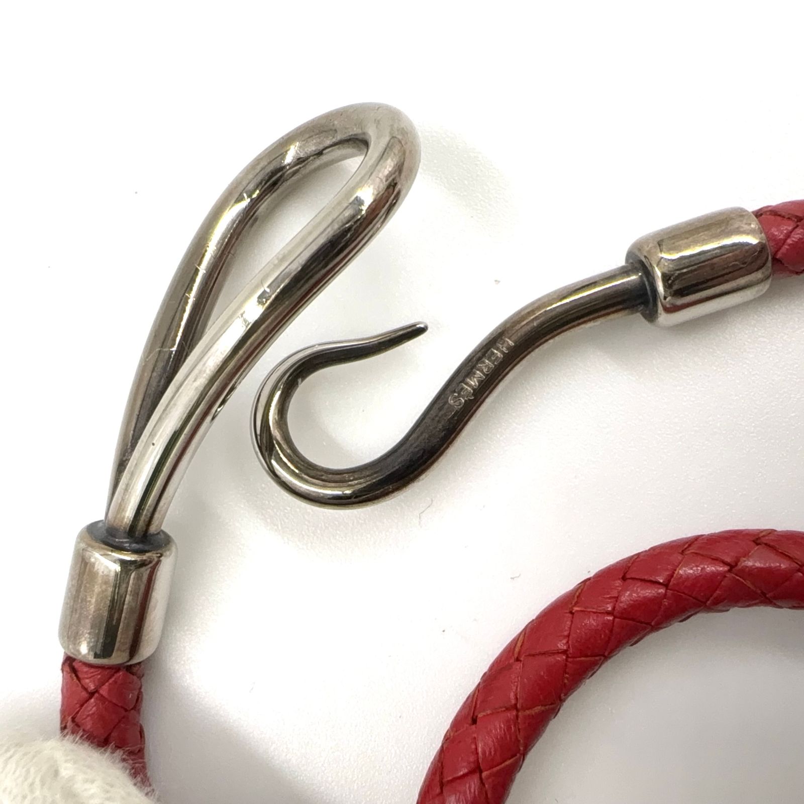 HERMES ジャンボブレス 編み込み レザー×メタル レッド ブレスレット バングル シルバー