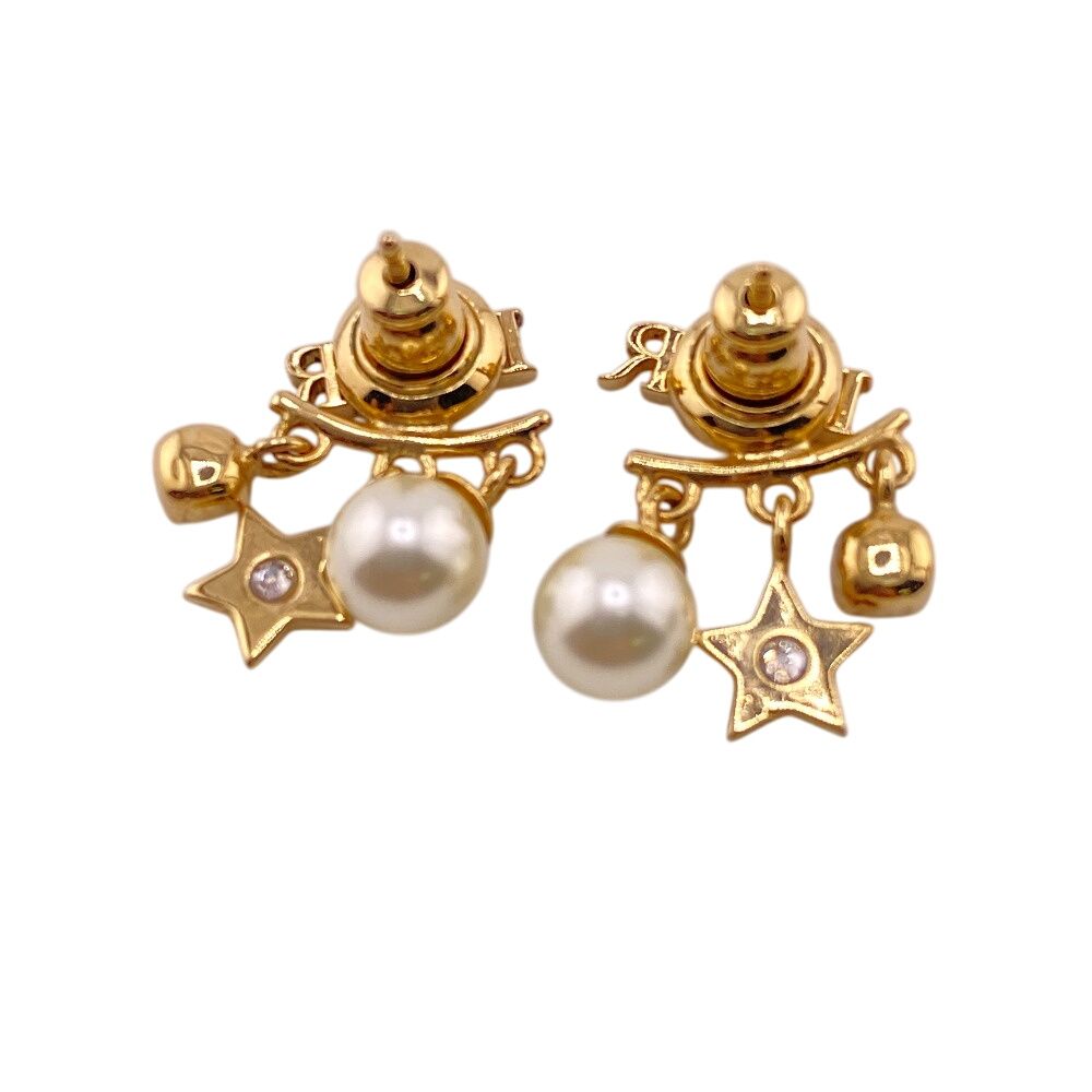 Christian Diorクリスチャンディオール フェイクパール スター ロゴ ピアス ブランド ジュエリー ゴールド レディース