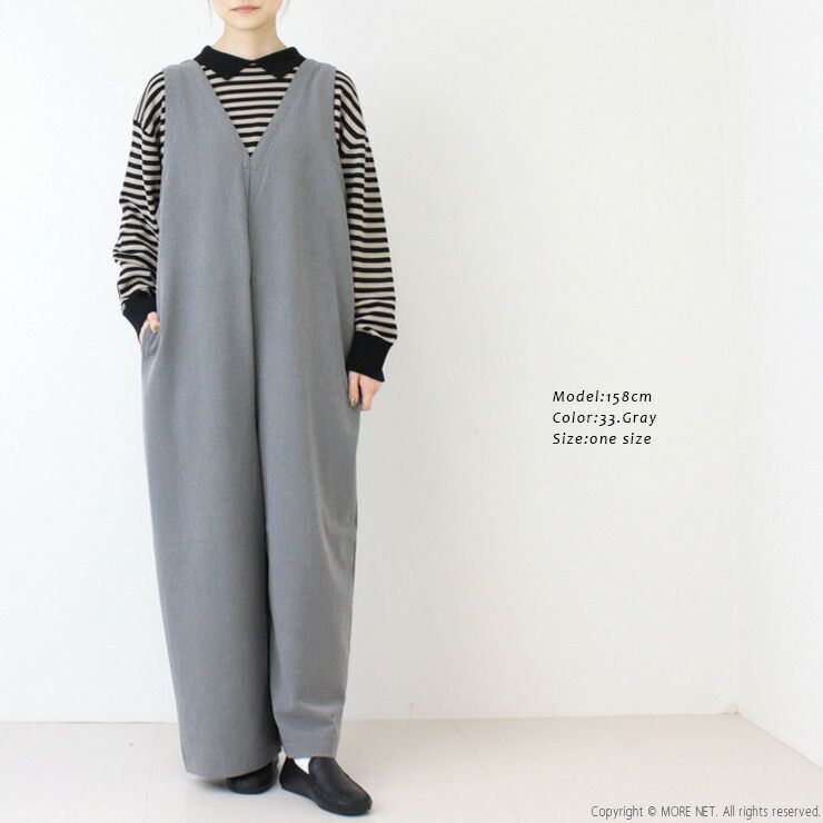 ・しなやかで滑らかな柔らかい生地が特徴のVネックオールインワン。