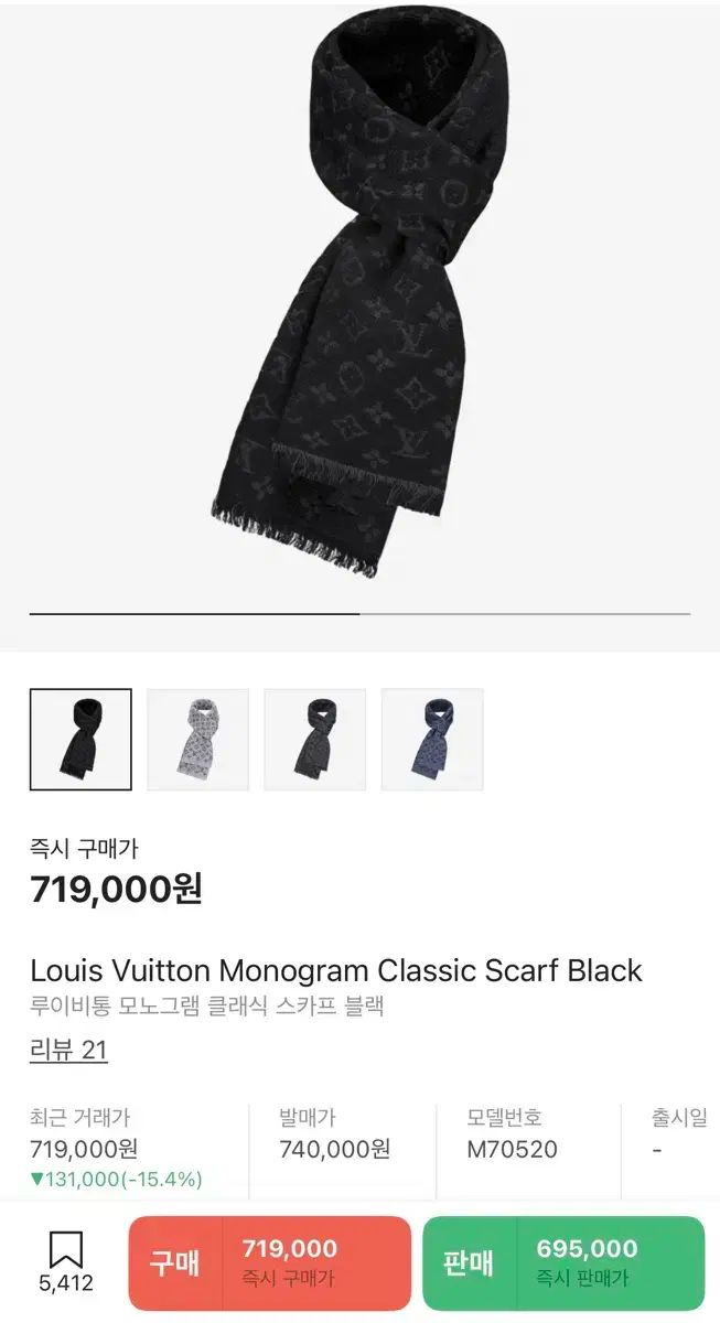 Louis Vuitton ルイヴィトン モノグラム クラシック スカーフ ブラック M 70520