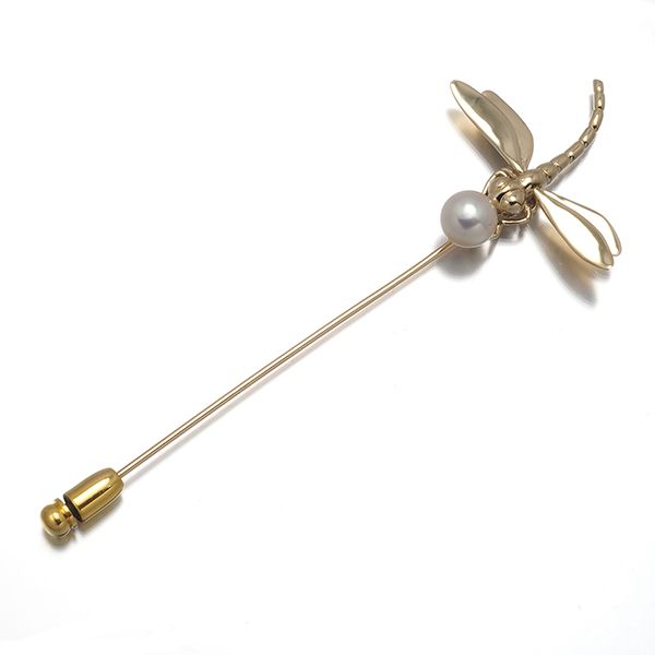 ミキモト ブローチ パール 真珠 6.7 mm ラペルピントンボ アニマル K 14 YG 178405