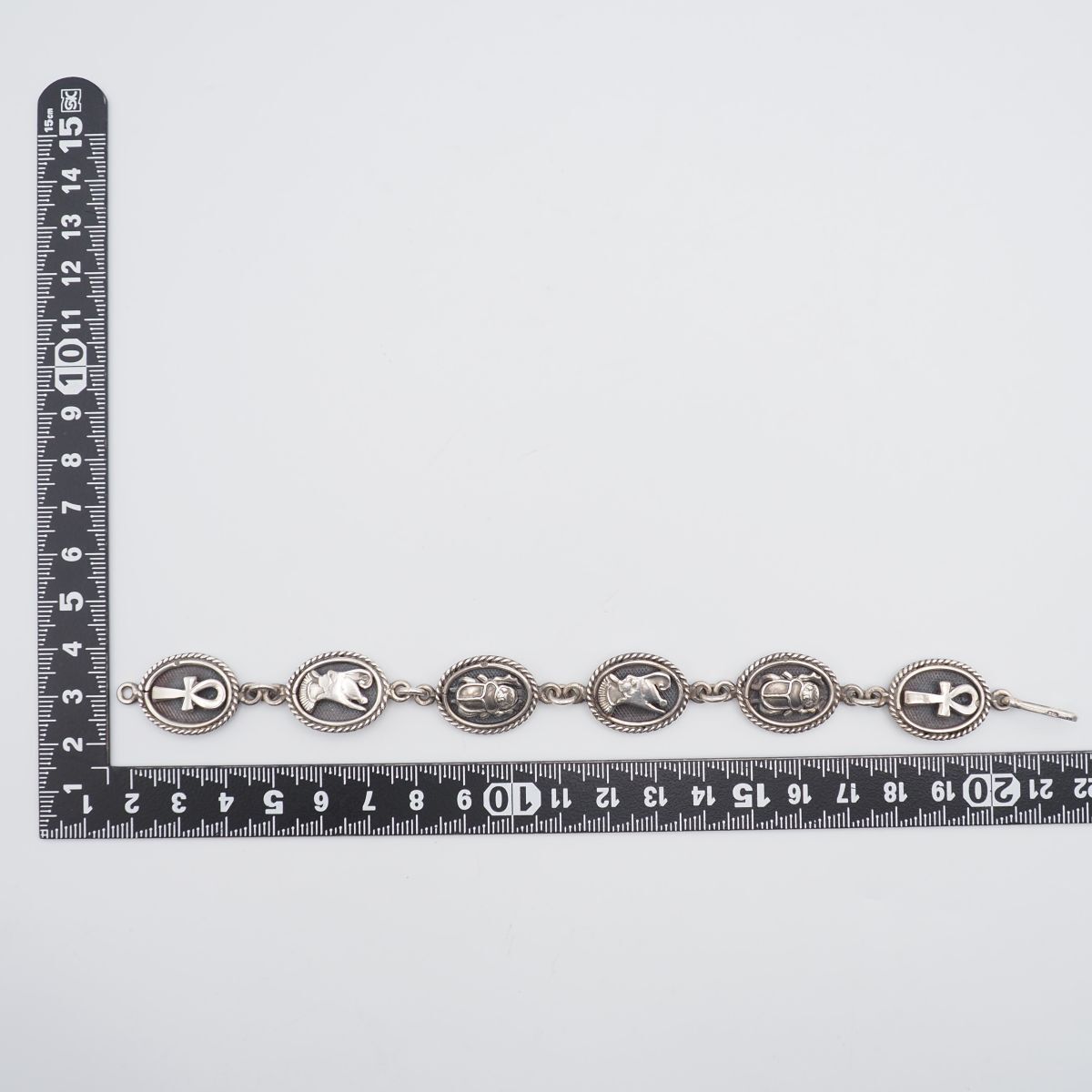 G 492 ヴィンテージ ホールマーク刻印 ブレスレット エジプト王 スカラベ アンク エジプト十字 デザイン シルバー