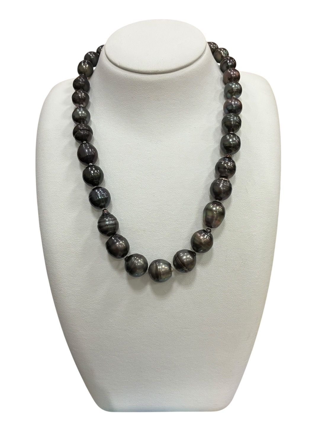 こちらの商品はトップ部分に12.8mmと大粒のブラックパールを使用し、全体的にテリが良くまたワイヤーの伸び等のダメージが少ない美品となります。