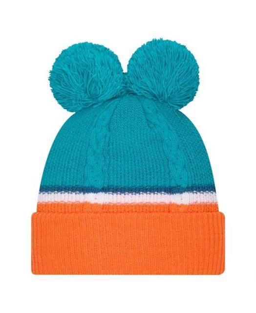 ニューエラ レディース 帽子 Women s Aqua Miami Dolphins Double Bubble Cuffed With Pom Knit Hat