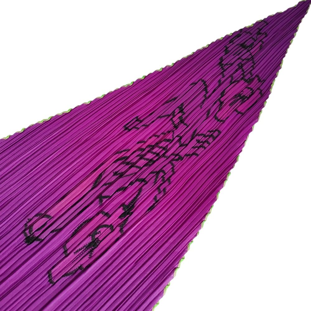 Pleats Please Issey Miyake プリーツプリーズ イッセイミヤケ ウグイス柄 スカーフ ストール マフラー パープル レディース 古着
