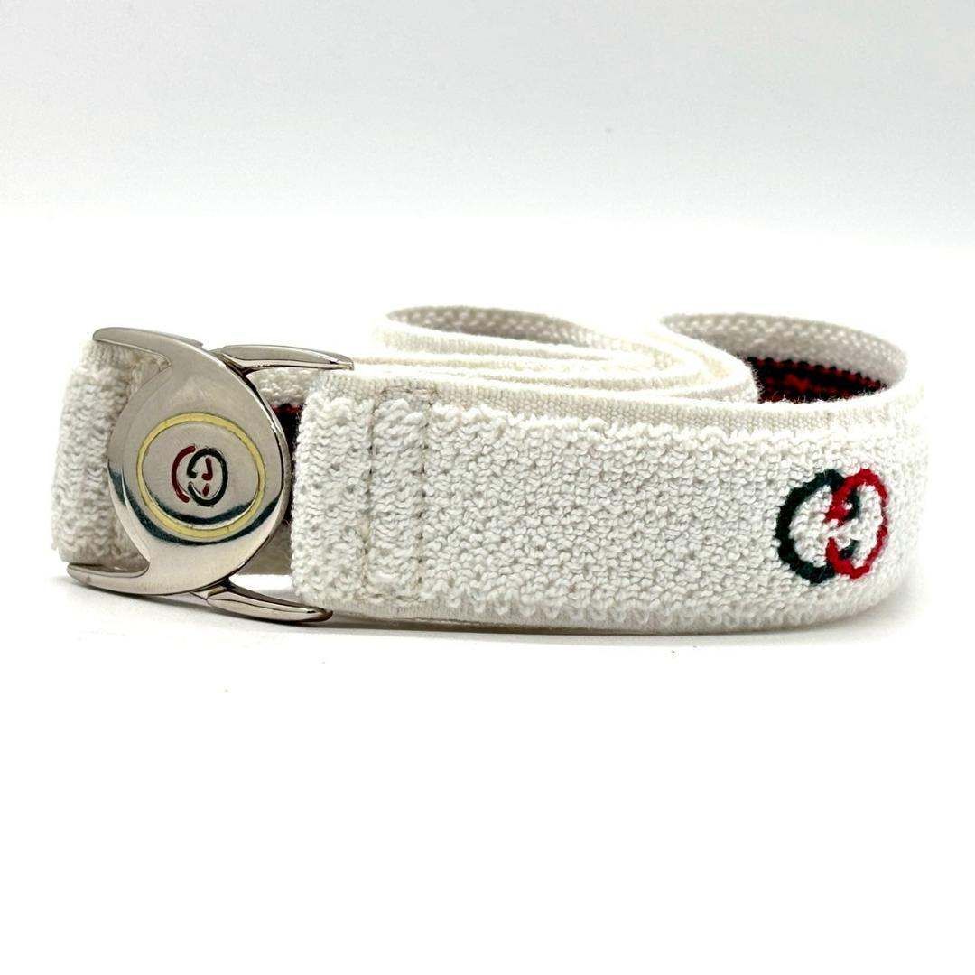 ヴィンテージ薫るY 2 K GUCCI グッチ ベルト コットンストレッチ インターロッキング シェリーライン ホワイト