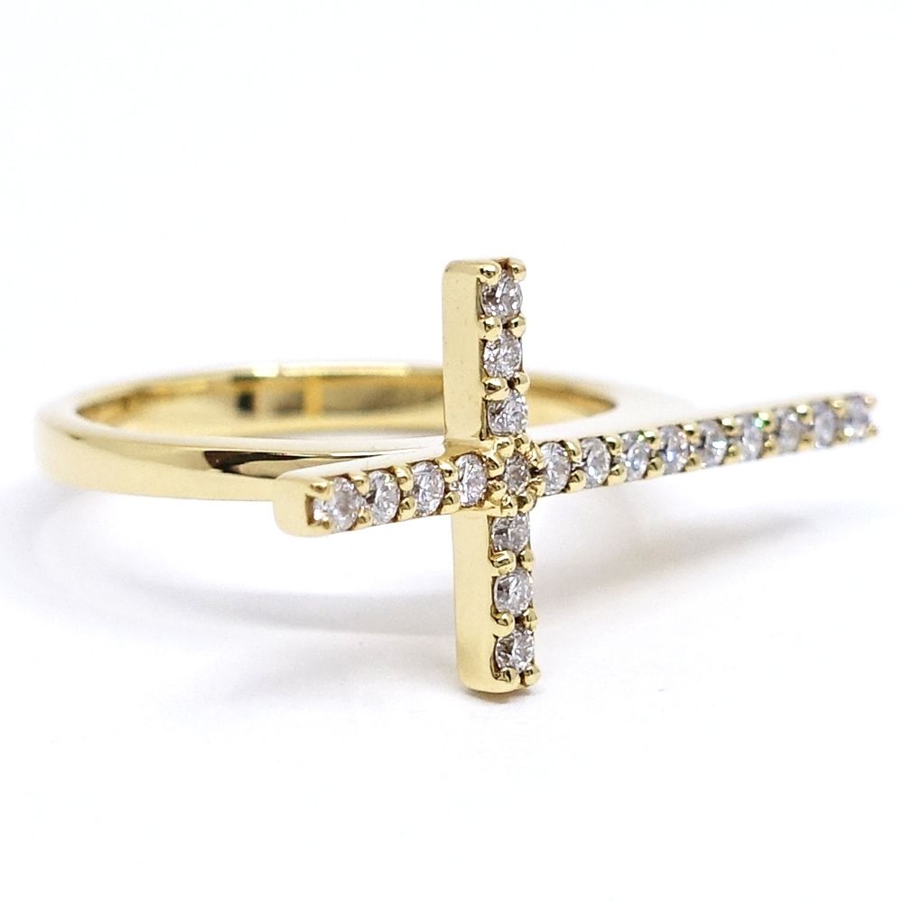 栄 ビジュードエム K 18 YG クロス ダイヤモンド リング 指輪 横向き 750 十字架 ジュエリー その他