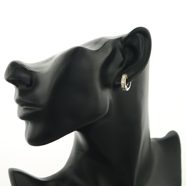 イエロー&ホワイトゴールドの表情をリバーシブルで演出したGSTVのピアリング。一面に並ぶ上質テーパーカットダイヤモンドの眩い輝きが耳元を上品に演出します。