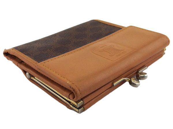 セリーヌ CELINE 二つ折り財布 マカダム ベージュ×ダークブラウン レディース