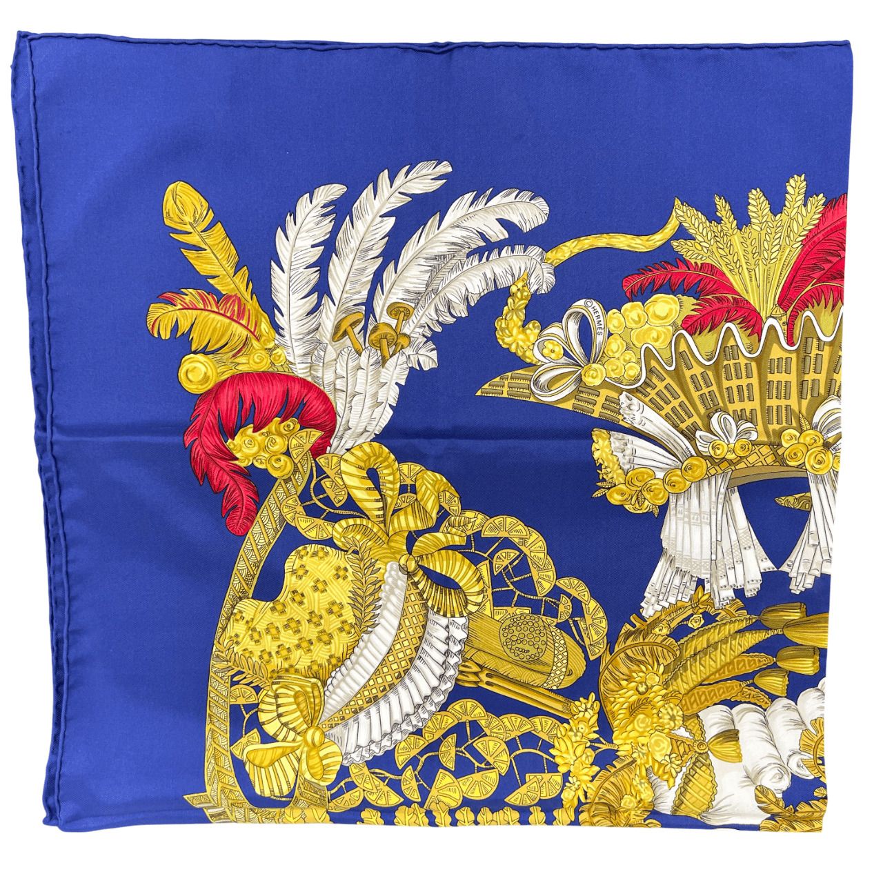 HERMES エルメス カレ90 chapeau! 帽子 脱帽 シルク ネイビー ゴールド マルチ ブランド小物 ヴィンテージ レディース ユニセックス ABランク 鑑定済