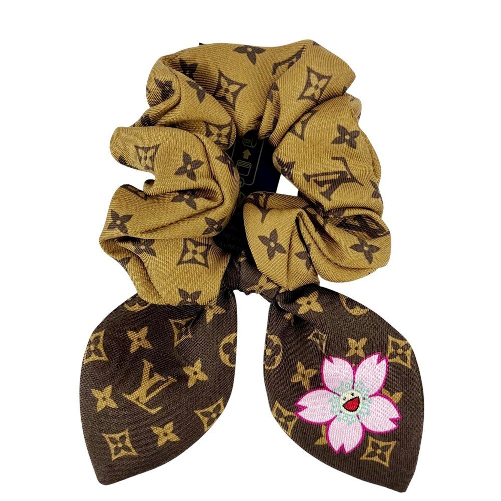 ♥ ルイヴィトン TMコラボ シュシュ ヘアアクセサリー モノグラム シルク ピンク ブラウン M 96067 箱 25864 12