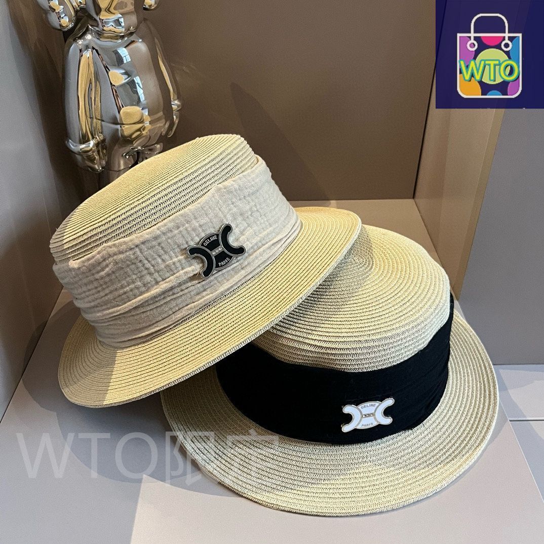 Celine シャネル フラットトップ礼帽|日韓風 日本の紙草製 木綿麻のリボンで装飾 頭周り 57 cm -WTO輸入1