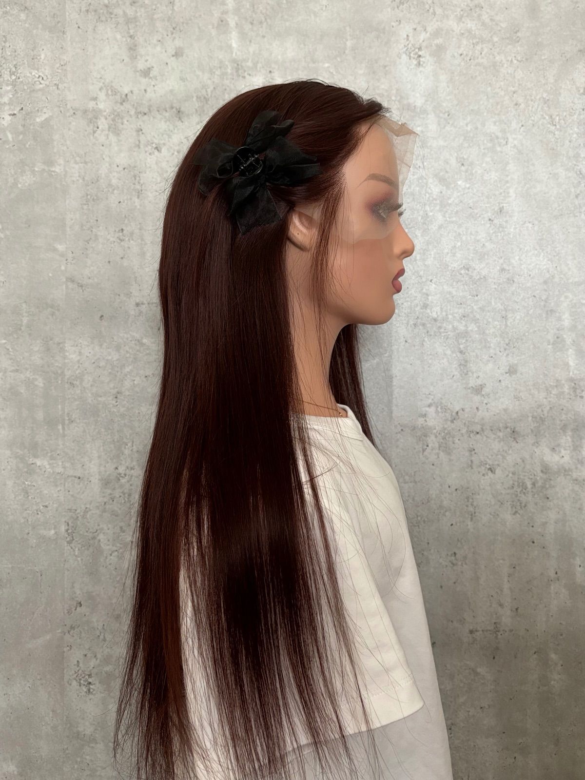 人毛 フルウィッグ|耳が出せる 自然なもみあげ|カシスブラウン|スーパーロング