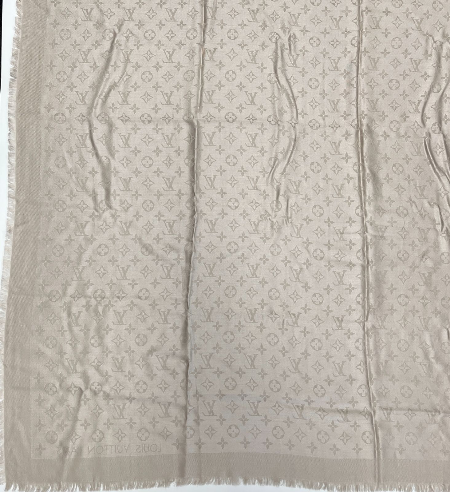 LOUIS VUITTON ルイヴィトン ショール モノグラム シルク ウール M 71336 IS 0136 ベージュ ヴィンテージ レディース HIBUOCHI VINTAGE