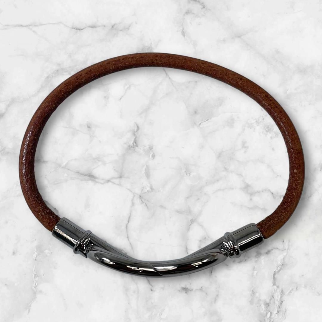 HERMES エルメス アタメ ブレスレット バングル レザー シルバー 茶