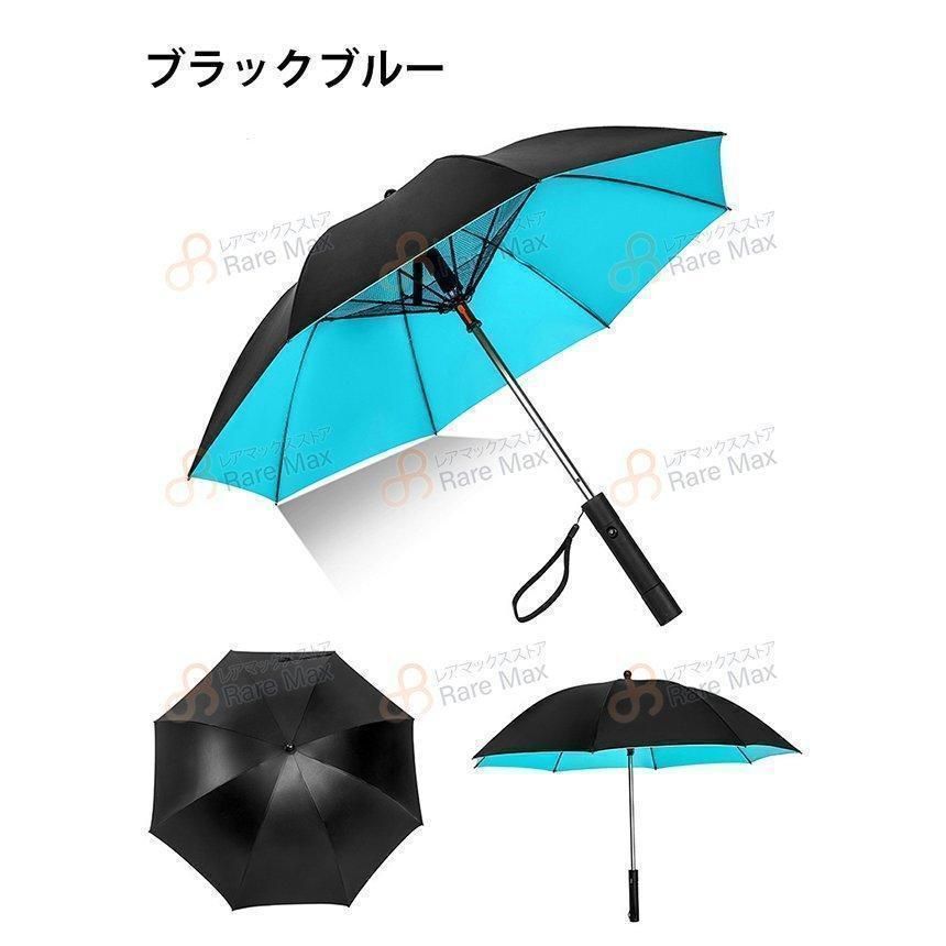 【扇風機機能】傘に搭載された専用の扇風機から吹き降りてくる風が首や頭などに当たり涼しくて快適です。傘にこもった空気を扇風機で追い出し、まるで木陰にいる涼しさに感じられます。