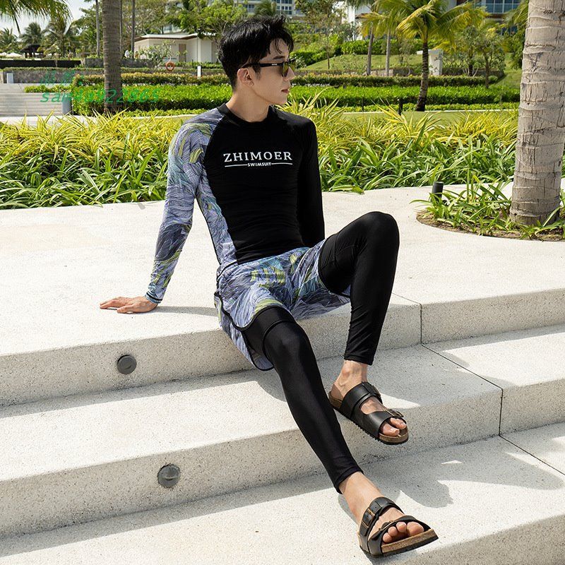 水着 メンズ 3点セット 長袖 レギンス 大きいサイズ 男性 海水浴 プール 露出控えめ 日焼け対策 5分丈パンツ マリンスポーツ スパ水着 スポーツ水着 クラゲ対策 am 4 a 922865