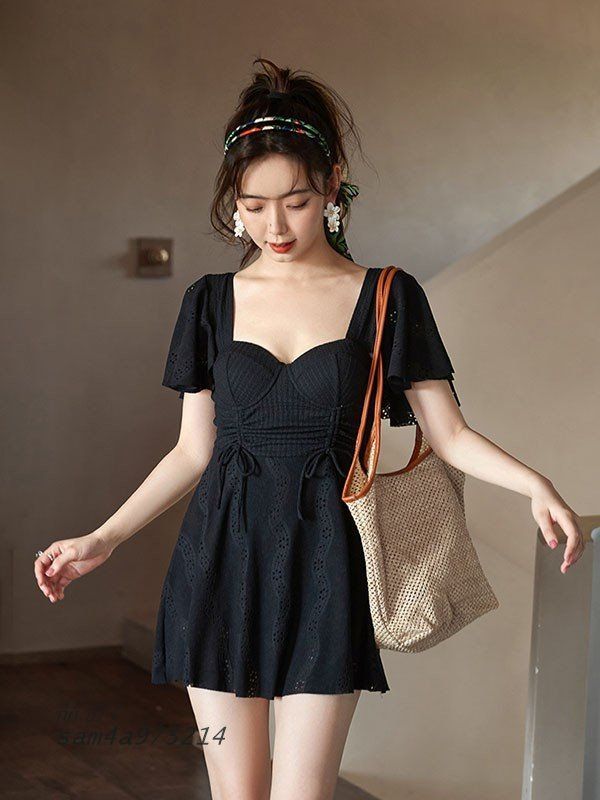 ワンピース水着 ぽっちゃり 水着 レディース 大きいサイズ 韓国 フレアスリーブ ガール 可愛い 袖付き 痩せ見え 体型カバー 花柄 温泉 ビーチ プール 海 水泳 セクシー オトナ女子 かわいい 黒 ブラック ホワイト N1LA