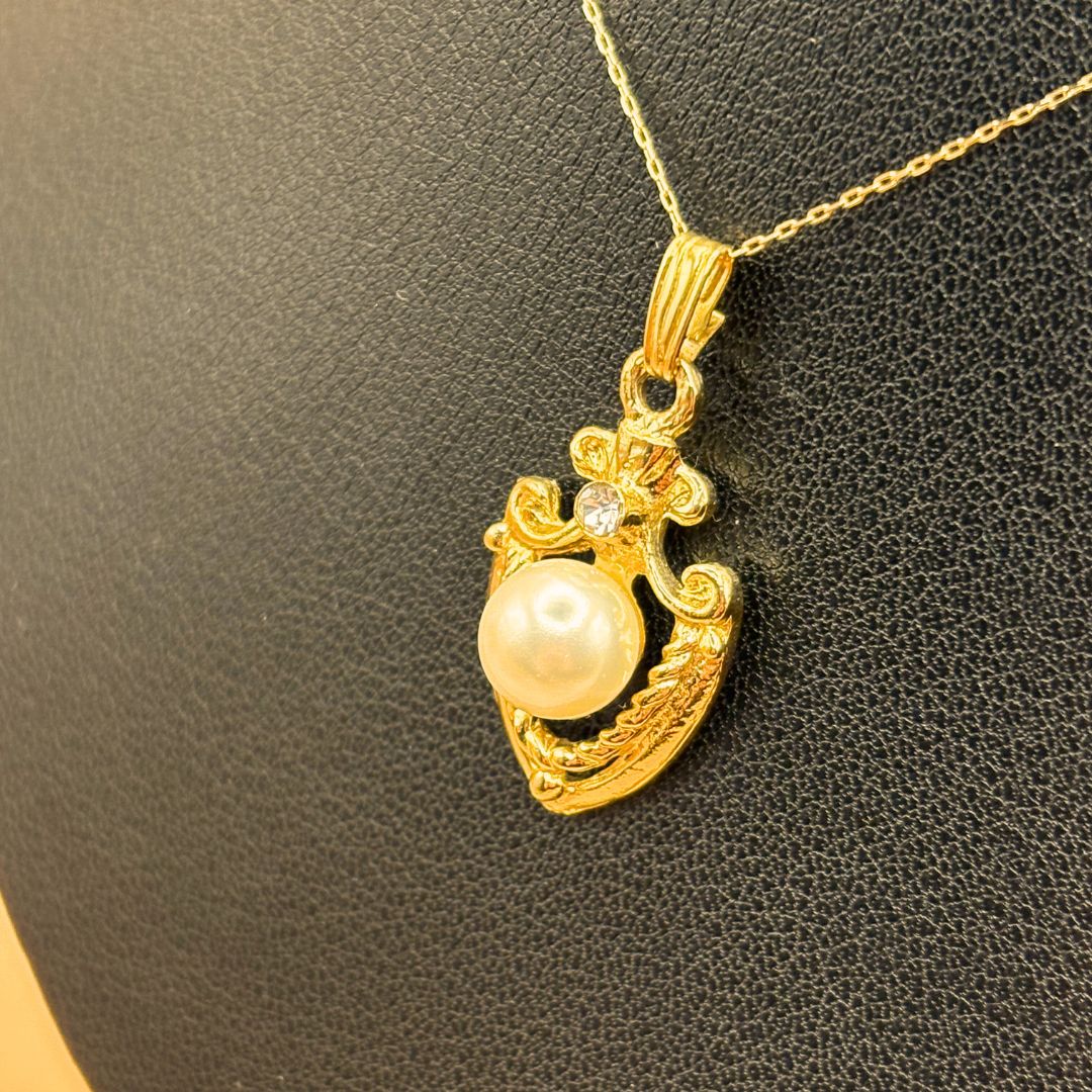 18 Kゴールド 小豆チェーンネックレス 白石トップ付き Au 750 K