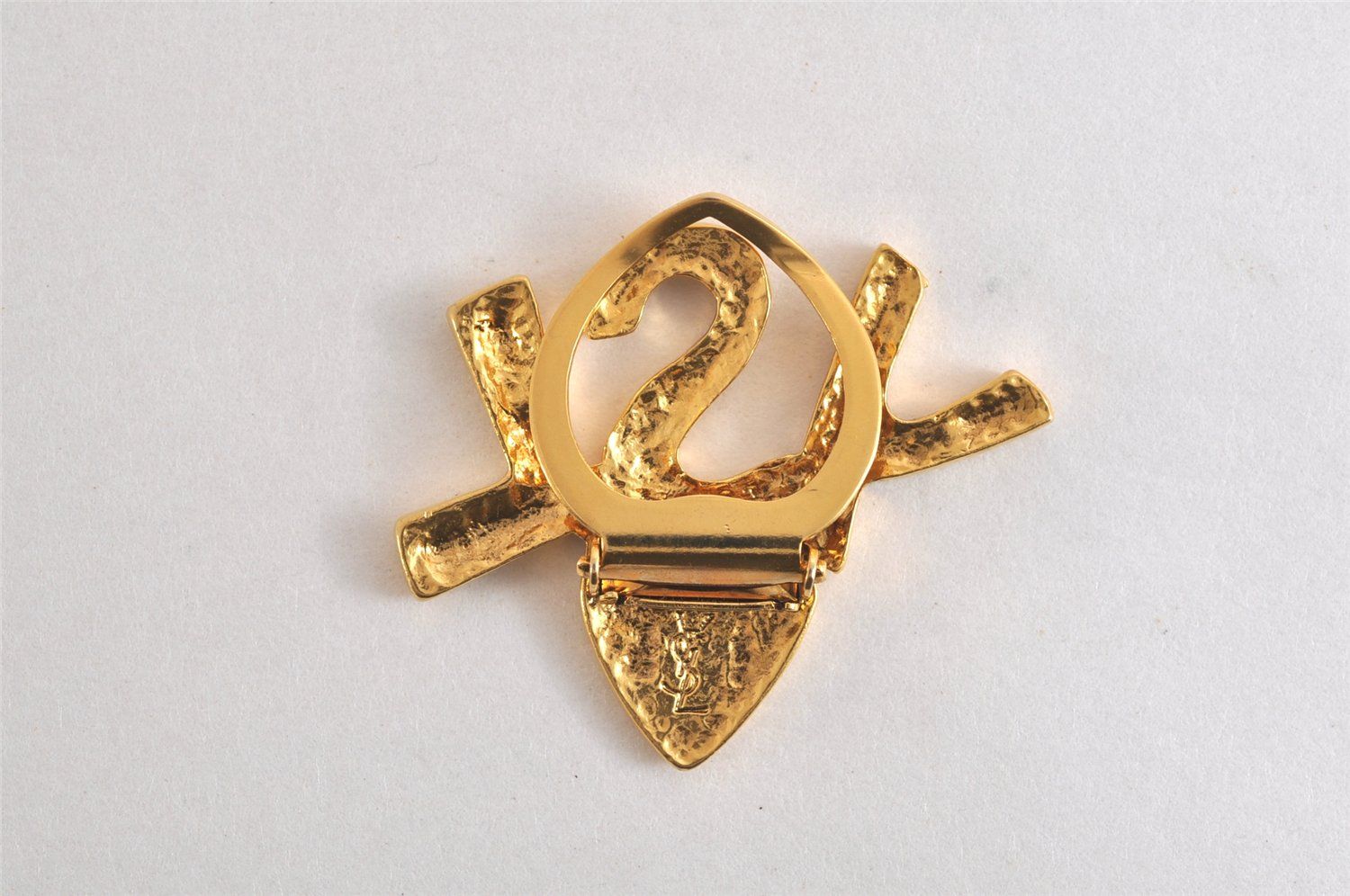 YVES SAINT LAURENT イヴサンローラン ロゴ クリップオン ブローチ ゴールド トーン 2720 N