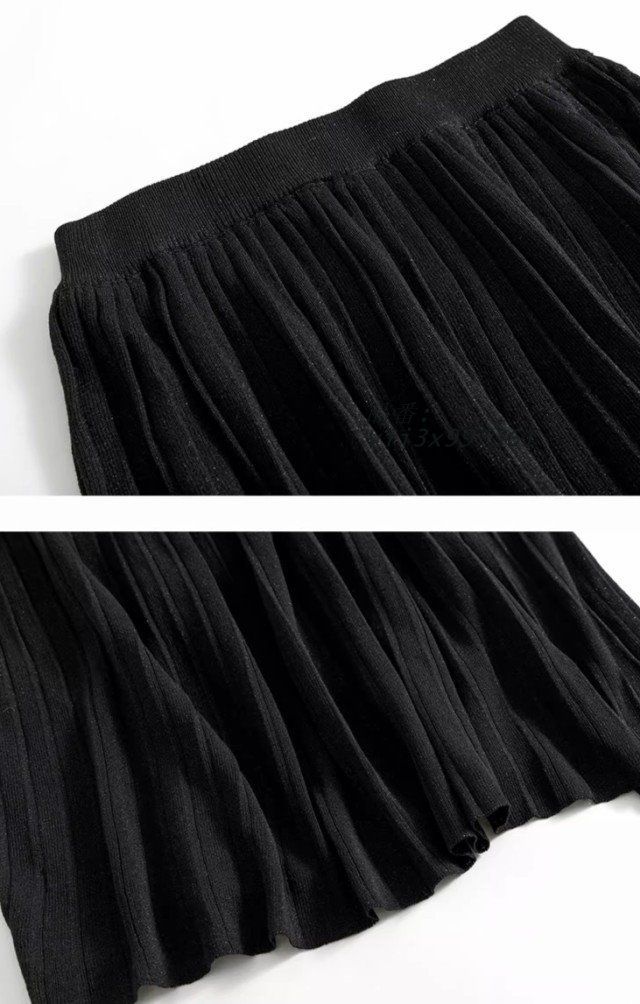 セットアップ レディース サマーニット フレンチスブ ニット きれいめ 春 ウエストゴム スカート 夏 3 L 大きいサイズ ミモレ丈 ロング シンプル Aライン 黒 vii x 997361
