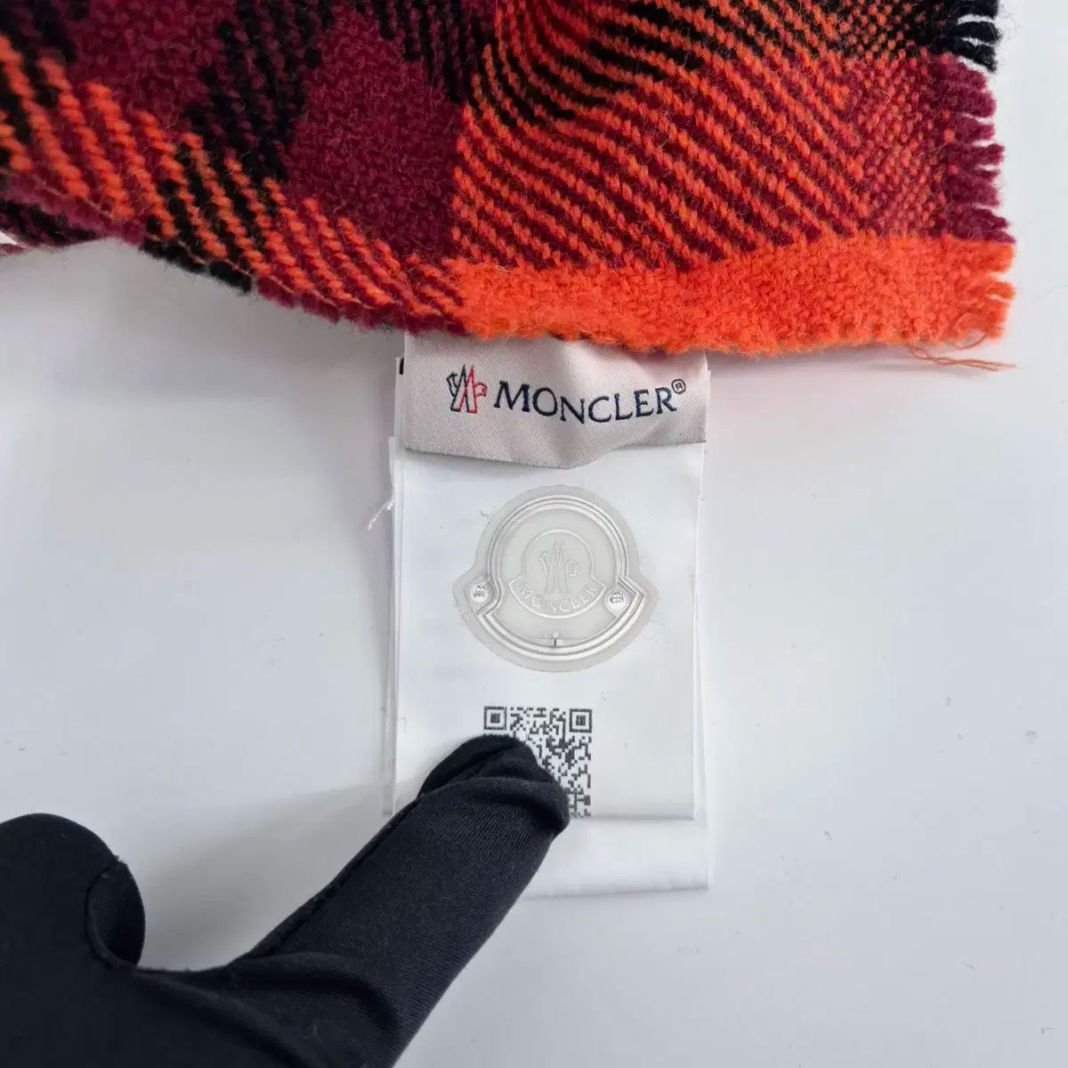 100 MONCLER モンクレール ロゴ ウール チェック マフラー