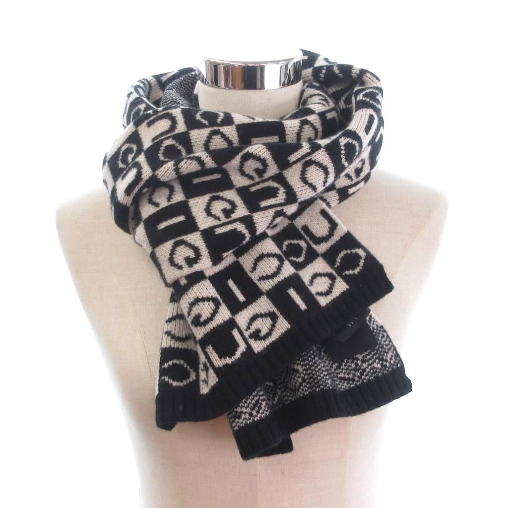グッチ GUCCI マフラー チェッカー ロゴ 総柄 ウール 黒 ブラック 白 ホワイト 小物