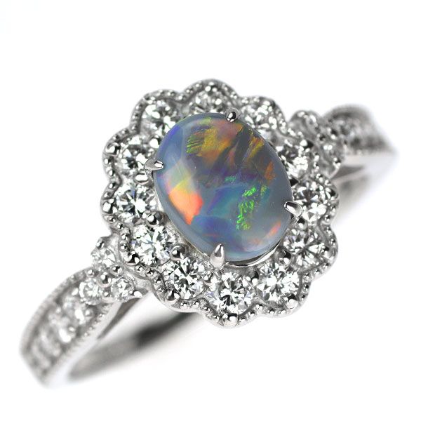 Pt 950 オーストラリア産ブラック オパール ダイヤモンド リング 0.740 ct D 0.52 エスコレ