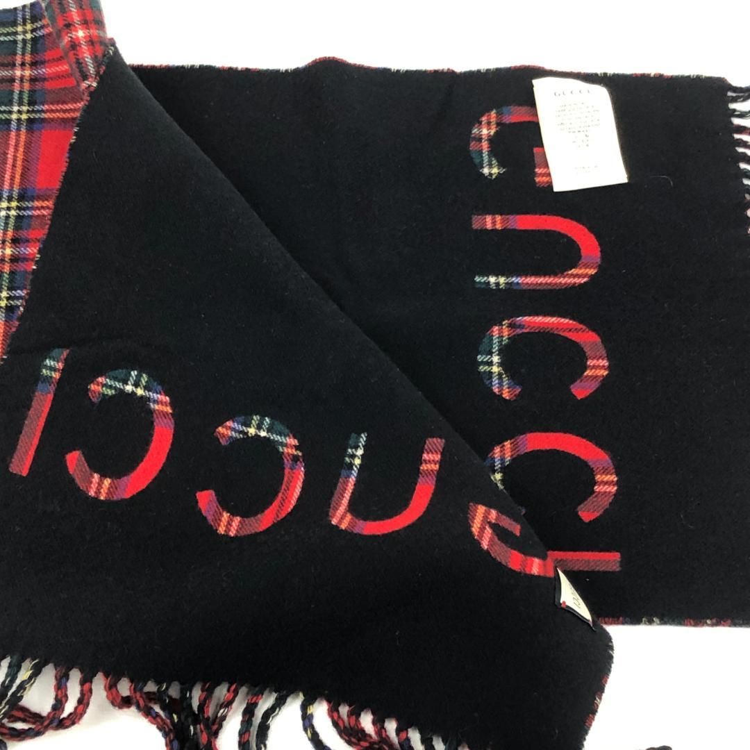 売り切り き GUCCI グッチ タータンチェック マフラー 597530 ウール レッド