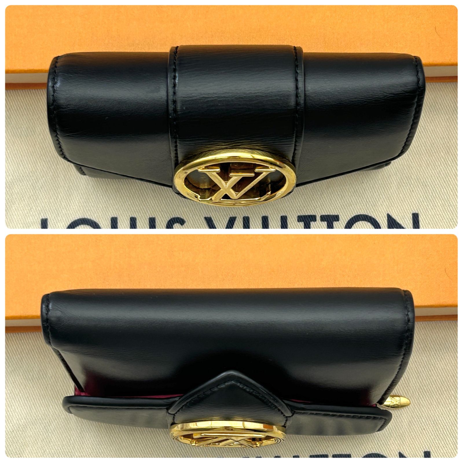 ぷっくりとしたデザインが可愛らしいポルトフォイユ LVポンヌフの折財布です!ゴールドのLVサークルスタッズが印象的で、内側は鮮やかなピンクなので開くたびにテンションが上がります✨